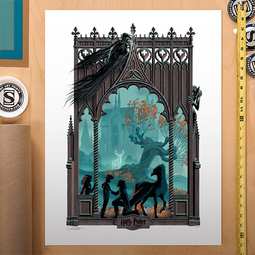 イギリスの作家J・K・ローリングによって著されたファンタジー小説を基に映画化され、映画完結後も多くのファンを有するファンタジー作品「ハリーポッター」シリーズから、2004年シリーズ3作目となるホグワーツ魔法魔術学校の3年生となったハリー・ポッターを描く『ハリー・ポッターとアズカバンの囚人』のムービーポスターがサイドショウより登場。バックビークとハーマイオニーに見守られ、ハリー・ポッターに別れを告げるシリウス・ブラックの姿をアーティスト、ジョージ・カルツォウダスがアーティステックに描き上げました。限定200枚のコレクターズアイテム。