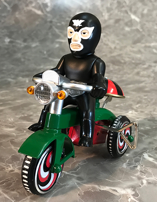 『仮面ライダー』に登場するキャラクターたちが、懐かしくレトロなゼンマイ式三輪車に乗ったソフビフィギュアで登場!こちらは再び登場となる「ショッカー戦闘員」。デフォルメもキュートなフィギュアながらも、そのキャラクターの特徴を細部まで造型で表現されています。三輪車はゼンマイを回し走行が可能。車輪も可動。おりん部分がチリンチリンと音が鳴ります。昔懐かしきスタイルが逆に新鮮にうつるノスタルジーあふれるアイテム。