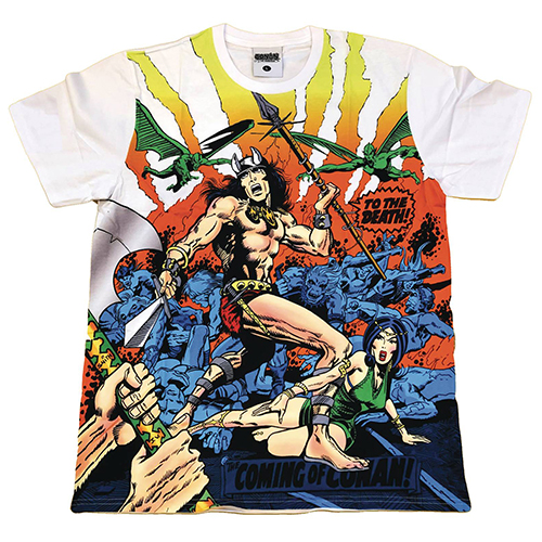 バリー・ウインザー=スミスによって1970年にマーベル・コミックで描かれた傑作コミック『コナン・ザ・バーバリアン』に最大級のリスペクトを込めて、タイタンコミックスからフロントにインパクト大なデザインが施されたTシャツが登場です!