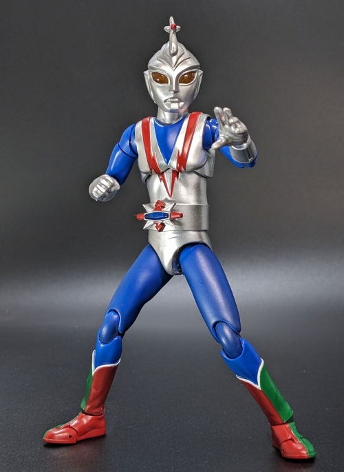 ヒーローアクションフィギュアシリーズ最新作は、70年代に放映された、東宝初の巨大ヒーロー番組『流星人間ゾーン』より、主人公の防人光が変身・巨大化した姿「ゾーンファイター」がバージョンアップしてフィギュア化です!番組内では怪獣たちと「じゃんけん」や「輪投げ」で勝負を決するコミカルな表現や、ゴジラやガイガン、キングギドラとの競演も話題にもなりました。ボディの各所に仕込まれた、新規開発の関節パーツで、ポージングも自在、あの思い出のシーンを机の上で楽しことが出来ます。オプションとして、表情豊かな手パーツ、流星ミサイルマイトパーツが付属します。