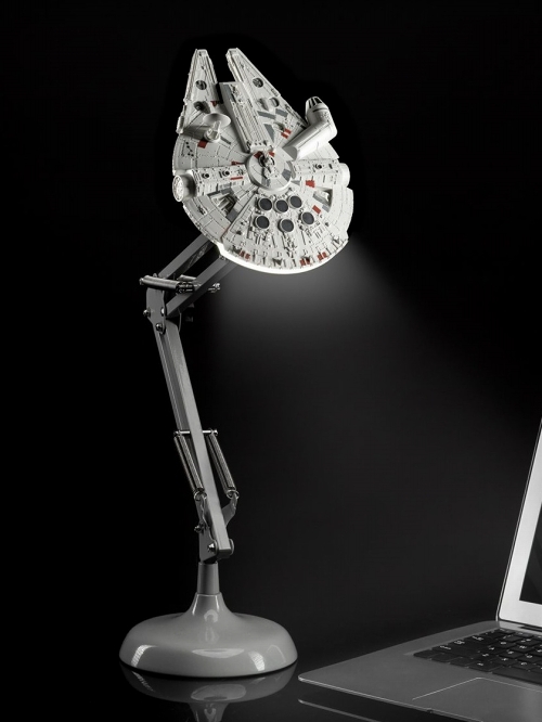 ケッセルランを12パーセクで飛んだ宇宙船ミレニアムファルコン、今度は貴方の机の上で…「うるさい!」ってなったらごめんなさい、だってTIEファイターに追われてるんですもの。バットマンのバットウィングに続き、『スターウォーズ』からもポーザブルデスクライト2種が電撃参戦となりました!ライトのヘッド部がミレニアムファルコン型になり、デスク上でビュンビュン、ライトで手元をピカー。うん、幸せ空間。電源はUSB接続で、ケーブルの長さは300センチを予定。