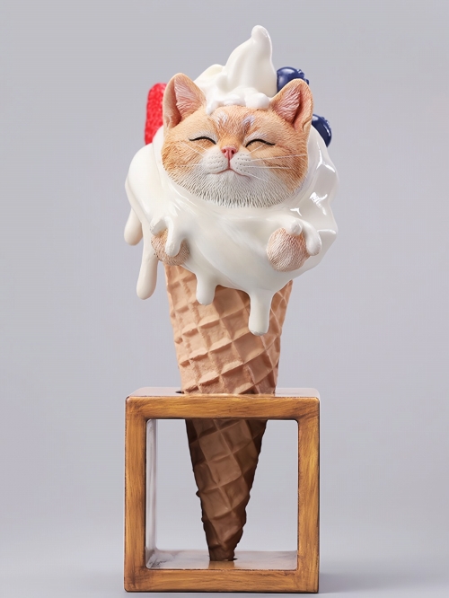 それ単体はもちろんのこと、同じスケールのアクションフィギュアと合わせることで、様々なシチュエーションとディスプレイが可能となる動物フィギュア。JXKスタジオから「子猫(英語では「kitty/キティ」と呼ぶ)」がフィギュア化されました。コーン付きのアイスクリームまみれになったネコチャンはこの世に存在しないので、ネコチャン自身の夢の姿を、全長約18センチで造型しています。しあわせそうな表情だ、夢なので。