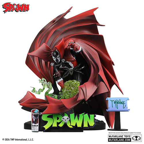 マクファーレントイズ。言わずと知れた『SPAWN』の作者であり、現ギネス記録保持者でもあるトッド・マクファーレンにより立ち上げられたフィギュアメーカー「マクファーレントイズ」が、トッド・マクファーレンが描いた「Spawn #1」のカバーアートのスポーンを「ブラック・ホワイト&レッド・オールオーバー」シリーズより全高約25cmのスタチューとして立体化!スタチュー全体を覆うほど存在感のある真紅のマントにもぜひご注目を。台座には、スポーンのロゴなどがデザインされています。さらに、スタチューと並べてディスプレイできる、トッド・マクファーレンのサインがあしらわれた巻物風のスタンドが付属。