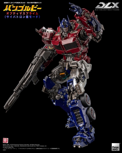 スリーゼロによる『TF』DLXシリーズから、映画『バンブルビー』版オプティマスプライムがラインナップです。サイバトロン星におけるオプティマスの姿を全高約29センチ、全身約53ヶ所の可動ポイントを持つフル可動フィギュアとして立体化。ハイディテールな造形、金属を含むマルチマテリアルを用いたフレーム構造による可動域、ウェザリングを含む緻密な塗装表現で、高い可動性、耐久性、安定性、そして「玩具ではない」ハイエンドなクオリティを実現します。両目にはLEDによるライトアップギミックも!アクセサリーとしてイオンブラスター、多数の交換式手首パーツ、DLXアクションスタンドと豊富に付属します。