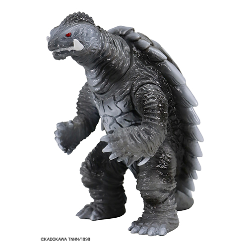 CCPミドルサイズでガメラシリーズ始動!!1999年公開の映画『ガメラ3 邪神〈イリス〉覚醒』から1999年版のガメラを手のひらサイズに落とし込んだ、手になじむ程よいサイズ感のレトロなソフビが登場。レトロな雰囲気ながら造形面、特徴である鋭利な甲羅、前作よりも厳しくなった表情、表皮のテクスチャなどにもこだわりを感じます。こちらは、モノクロ風味のボディに、凶暴に赤く光る目という、悪夢に出てくるような姿をイメージしたカラーリング「ナイトメアイメージ Ver.」。モノクロトーンの甲羅は必見の格好良さ。グレー成形にホワイトのハイライトとブラックのシャドーでグラデーションされた彩色は、レトロでありつつ重厚感も感じられます。