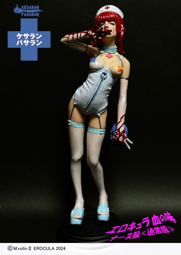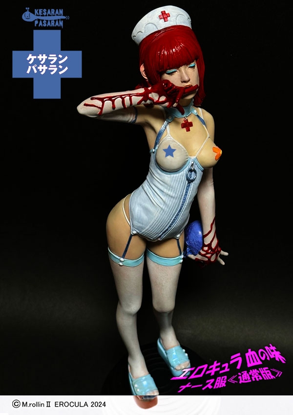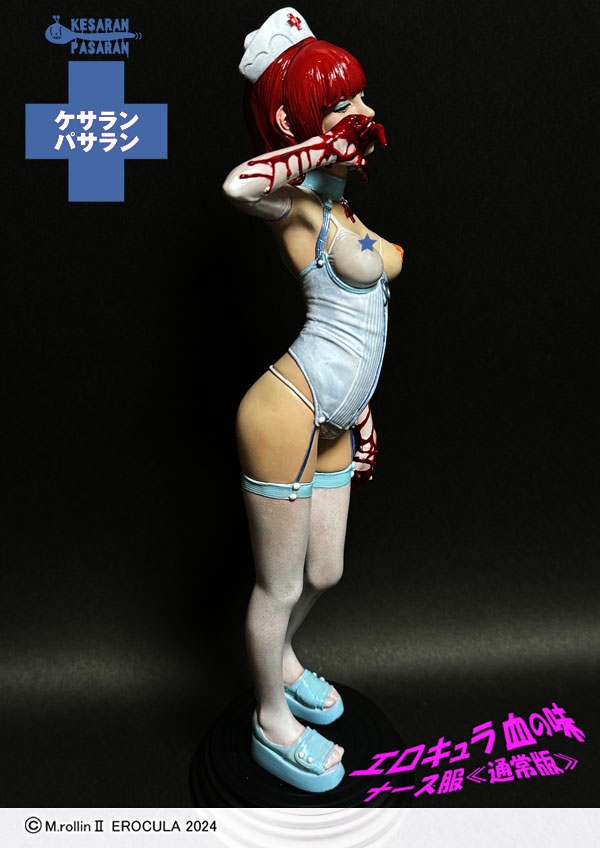 ダークファンタジーアイテムを得意とするケサランパサラン氏が、ワンダーフェスティバル2024夏よりキット販売をスタートしたオリジナルキャラ「エロキュラ」が、複数回の試行錯誤を重ね、より魅力的なカラーリングを検討し、塗装済み完成品のレジンスタチューとして登場です。両手には血が滴り、ヘアカラーもブラッディカラーに染められたダークかつエロティックなアート作品。唯一無二な世界観を放つエロキュラをぜひご堪能ください。