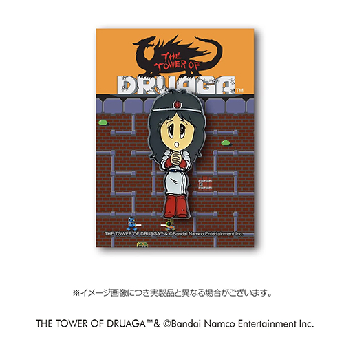 60階のフロア、多彩な敵キャラ、そして数々の謎!『バビロニアン・キャッスル・サーガ』シリーズは、このタイトルから始まった!ナムコが開発し、1984年7月に発売された業務用アクション名作RPG「ドルアーガの塔」のピンズが登場!囚われの巫女「カイ」のピンズです。レトロな雰囲気でバッグなどを彩るコレクション。