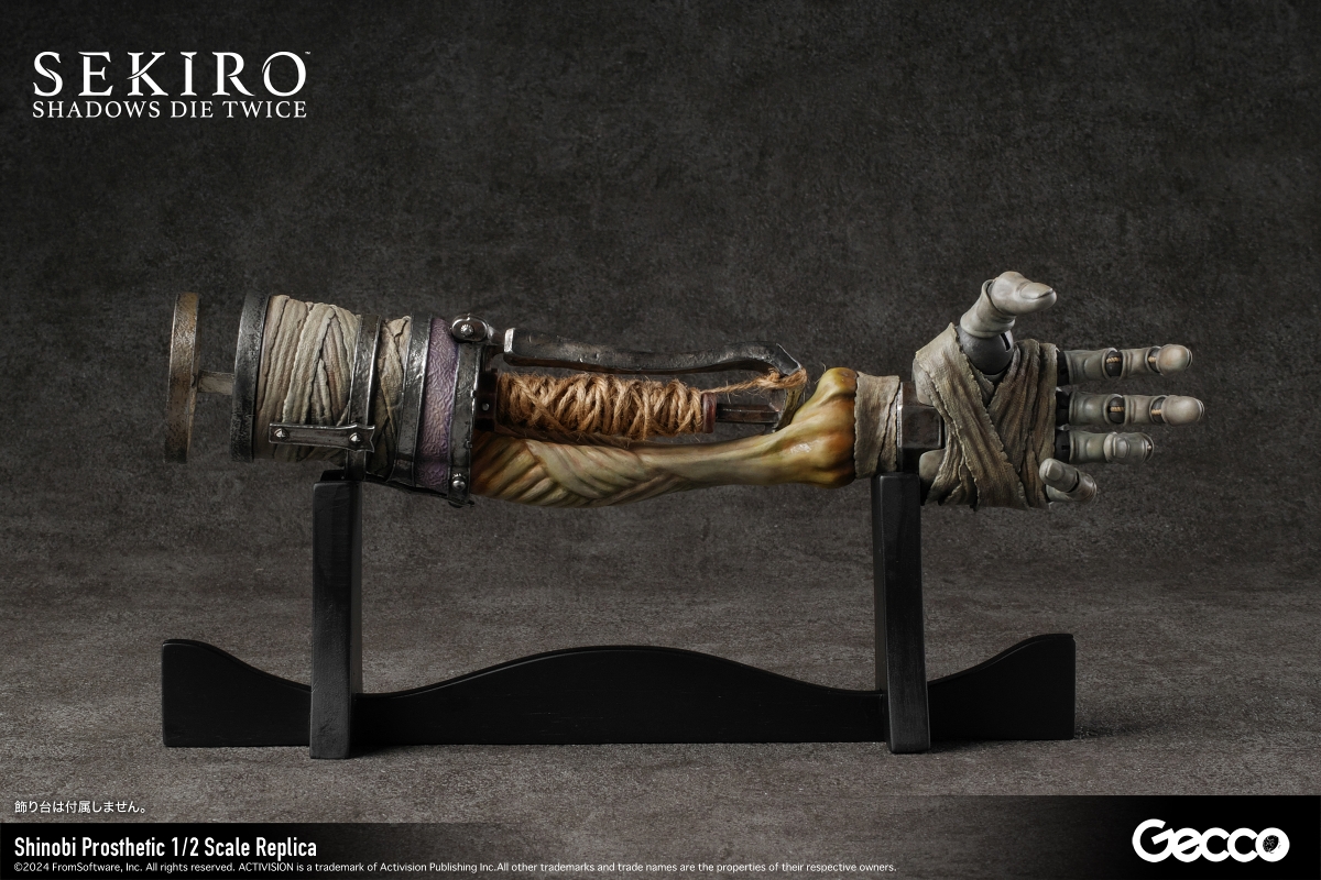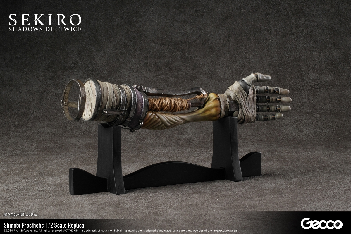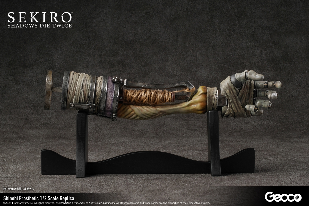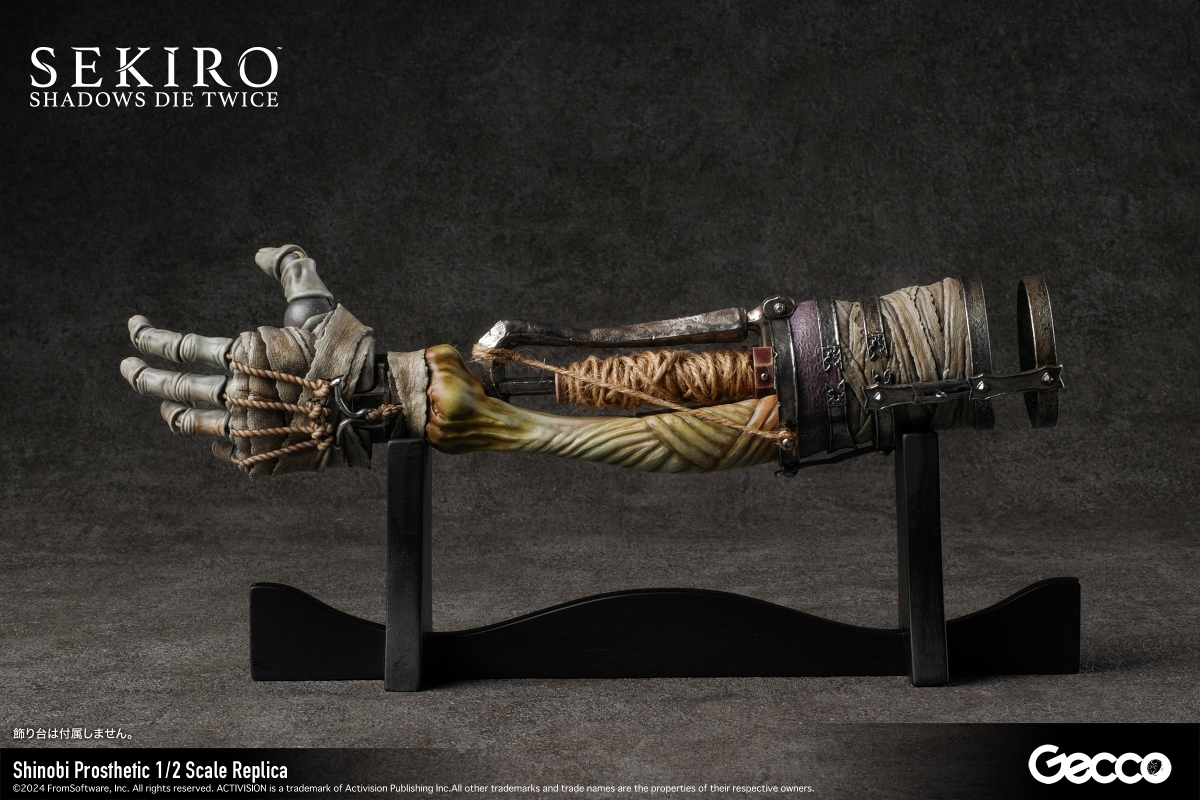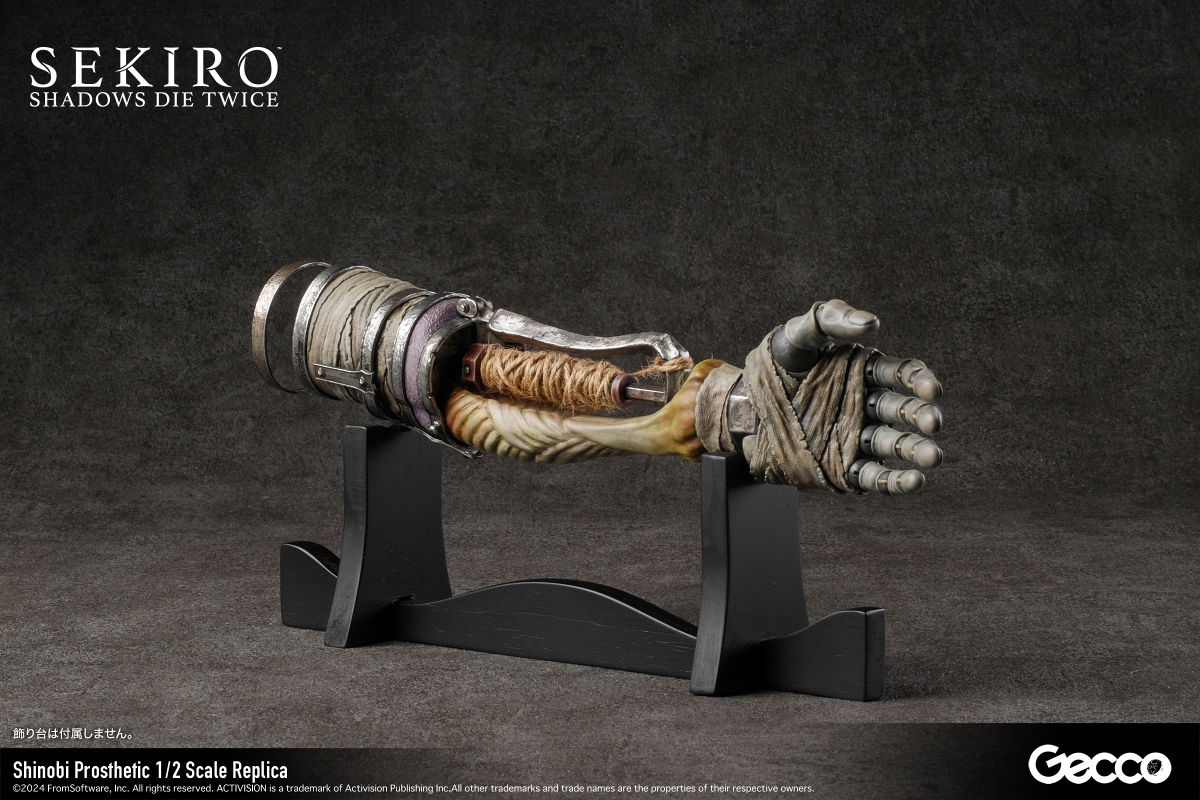 フロム・ソフトウェアとアクティビジョンがタッグを組み、世界中を熱狂させたアクション・アドベンチャーゲーム『SEKIRO: SHADOWS DIE TWICE』。物語の冒頭で左腕を失った主人公「狼」。その左腕を補い、戦闘能力を大きく向上させる主要装備「忍義手」が1/2スケールレプリカとして登場。