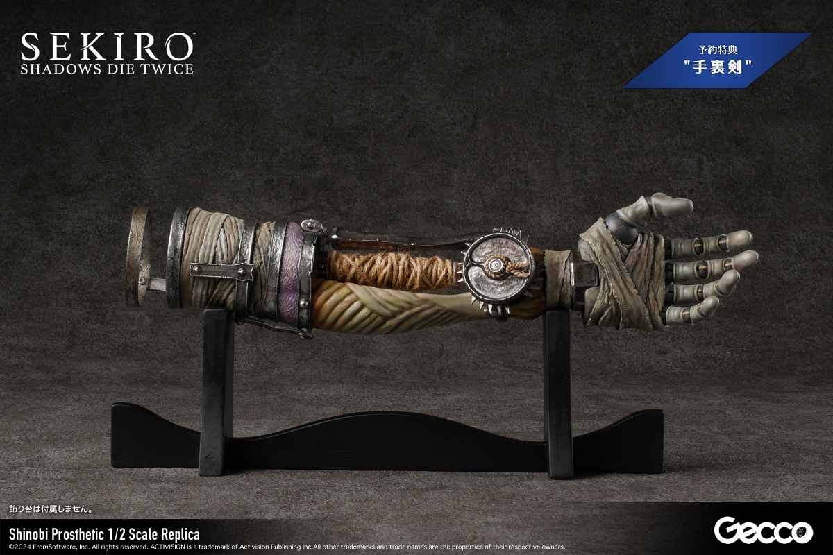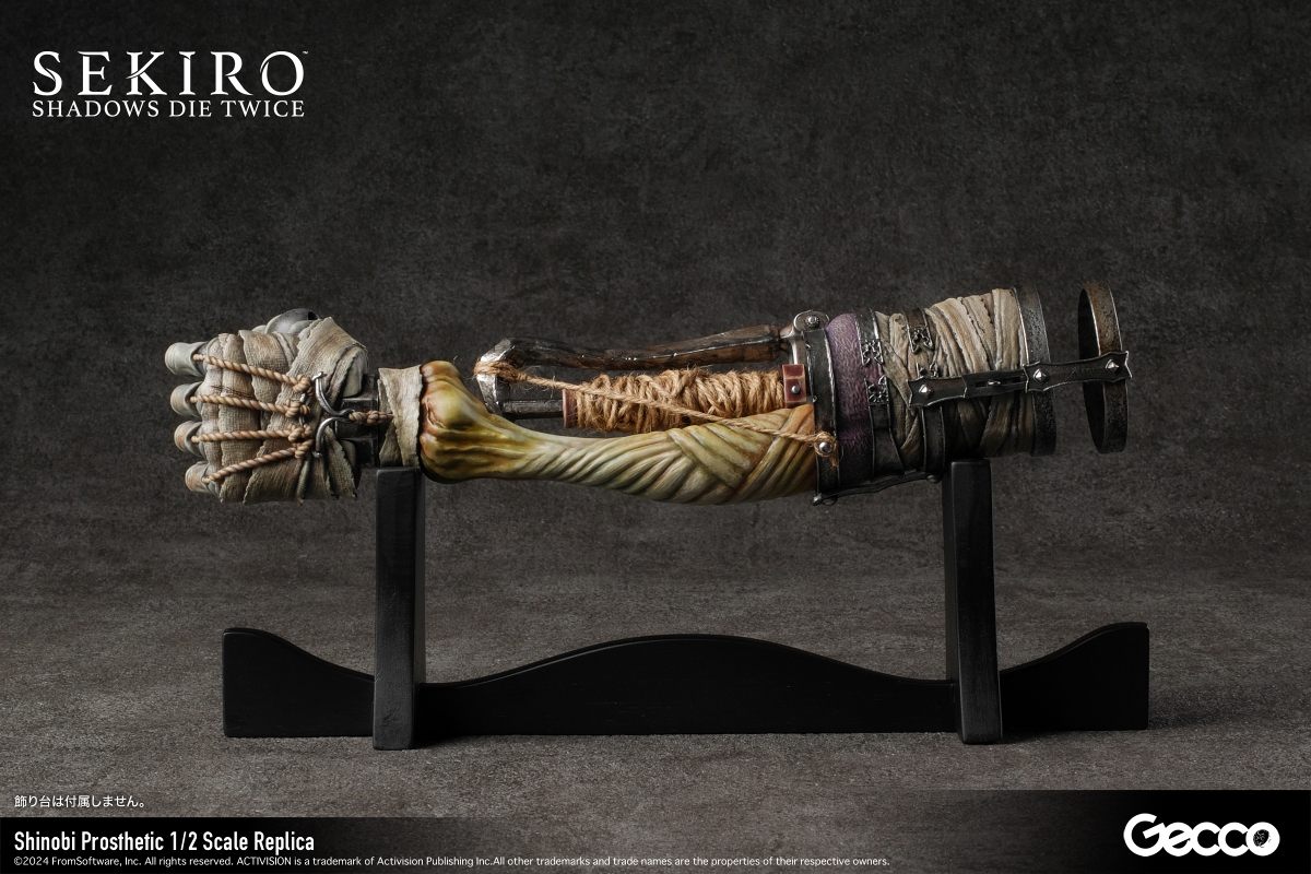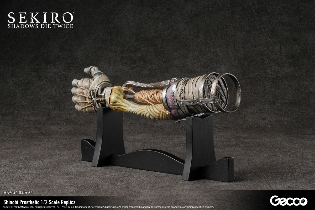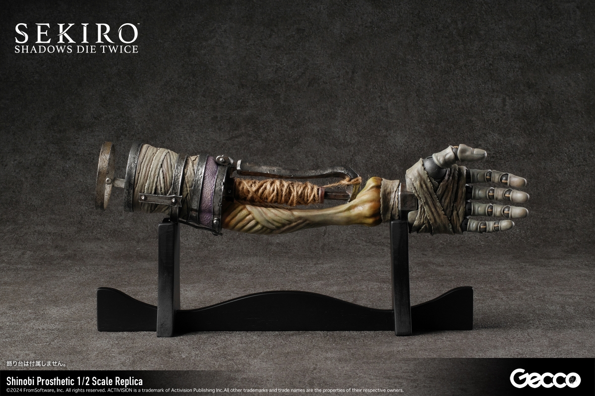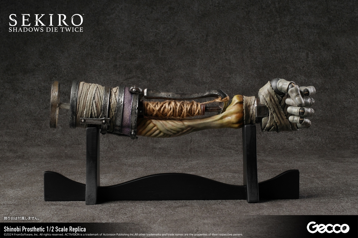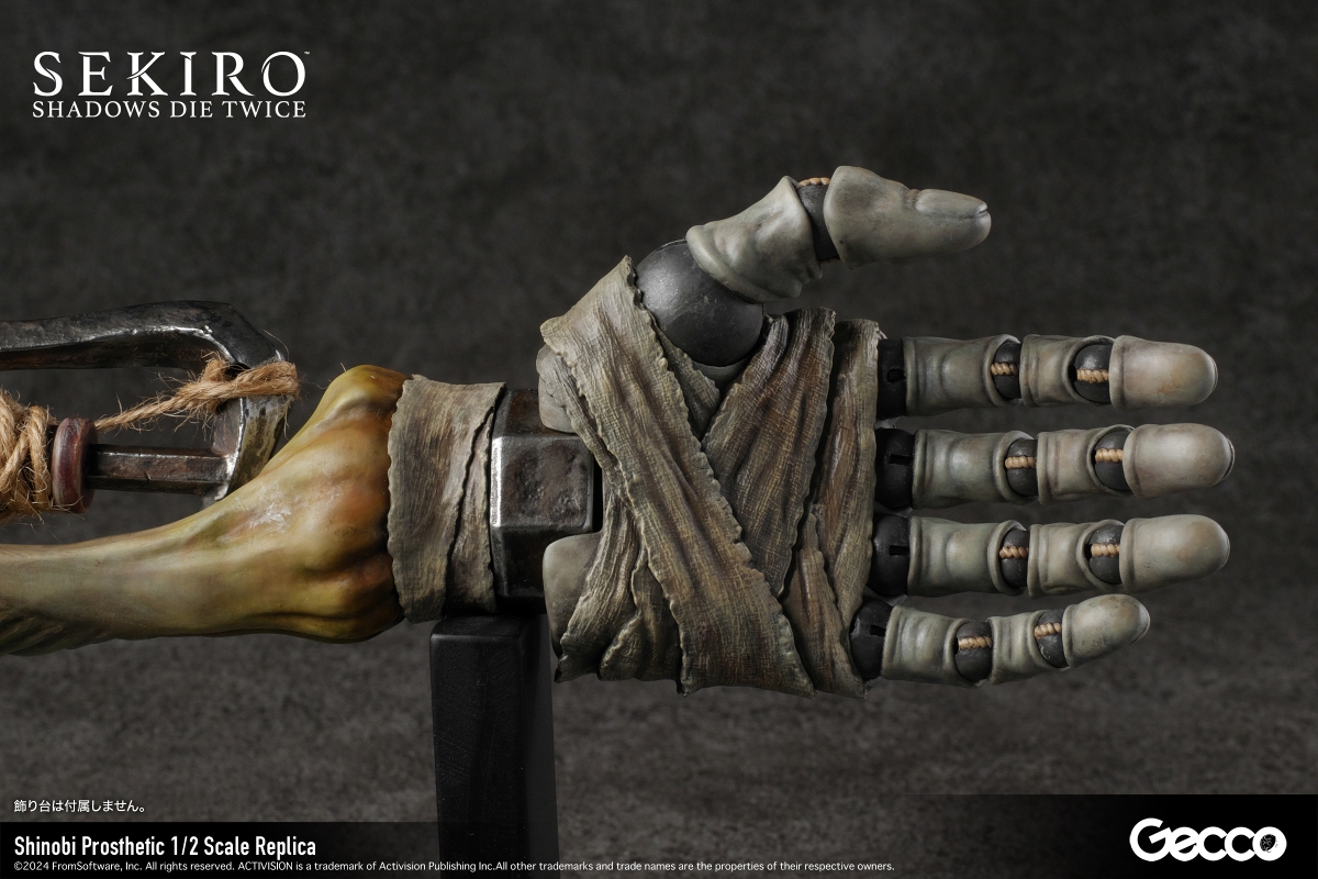 フロム・ソフトウェアとアクティビジョンがタッグを組み、世界中を熱狂させたアクション・アドベンチャーゲーム『SEKIRO: SHADOWS DIE TWICE』。物語の冒頭で左腕を失った主人公「狼」。その左腕を補い、戦闘能力を大きく向上させる主要装備「忍義手」が1/2スケールレプリカとして登場。