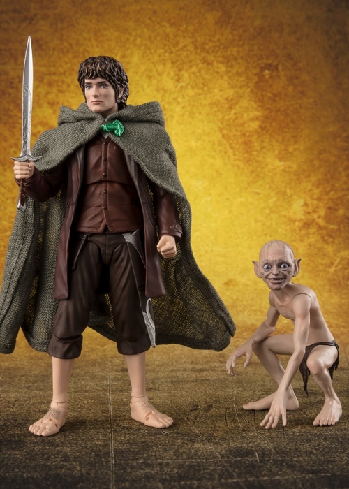 劇中イメージに近づけたフォルムバランスと、ポージングを行った際にシルエットが崩れない関節構造、その二つを兼ね備え、さらなる進化を遂げた次世代「S.H.フィギュアーツ」シリーズ。ファンタジーの原点とも言われる3部作映画の第1章『ロード・オブ・ザ・リング』より主人公「フロド・バギンズ」が「ゴラム」と共にシリーズにラインナップです。指輪を持った交換用手首パーツも付属。「指輪の仲間」でお揃いの布製マントはワイヤー入りで自由なポーズが再現可能です。