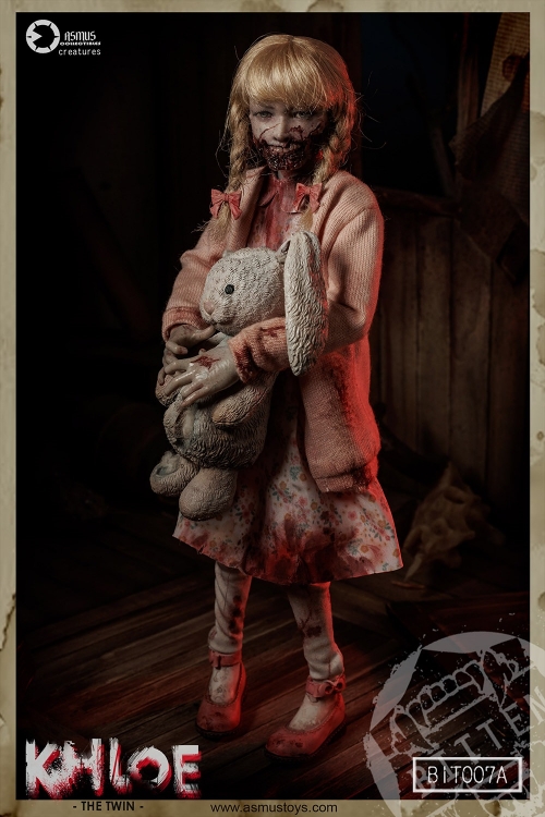 『ロード・オブ・ザ・リング』や『ホビット』の1/6フィギュアを数々リリースし、その確かな技術を見せる台湾アスモストイズ。そのアスモストイズが展開する、あまりに攻め攻めで本気造型が魅力的なオリジナルゾンビシリーズ「Bitten ビトゥン」。新作もやっぱりエグみ。クロエとカッティーの双子ちゃんも、慈悲のないゾンビっぷりでフィギュア化です。全高約21センチとなったクロエは、うさぎの人形「ジェシー」を抱いた姿で、口周りも大変なことに。交換可能なハンドパーツ、日記、そして「おじ」だったトミー(の半分の頭)ものも付属します、ひぃー…。