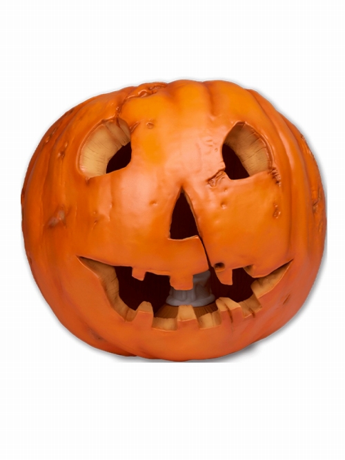 映画からコミック、ゲームまで幅広いキャラクターたちを迫力ある造形での表現が人気のプレミアムコレクティブルズスタジオ。その「PCS」の新作は『ハロウィン』(1978)のオープニングクレジットに登場した「ジャック・オ・ランタン」!クレジットが流れている間、画面左側で暗闇にぼんやり光りながらゆっくり近づいてくるだけの存在ですが、丸い両目と鼻から口にかけて切り裂かれた痕が特徴的で、これさえあれば『ハロウィン』のジャック・オ・ランタンであると分かるほど。全高約30センチのしっかりとした存在感とLEDキャンドルによるライトアップ機能で間接照明として使用することも出来る他、裏面にはポスタービジュアルが刻まれており、ファンにとってはたまらない仕様に!劇中では映らない天辺の「フタ」もちゃっかり。
