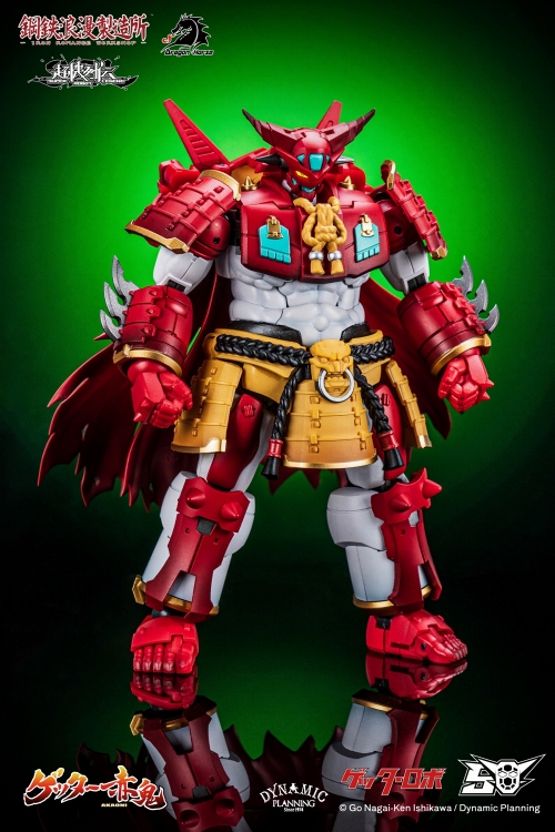 ドラゴンホース&アイアンロマンスワークショップ(鋼鉄浪漫製造所)で展開する、変形可動をテーマとしたシリーズ「超機列伝」が始動!ゲッターロボ誕生50周年を記念して、オリジナルデザインのゲッターロボ「ゲッター赤鬼」が第1弾としてリリース決定です。『ゲッターロボ』シリーズ一貫のコンセプトを受け継ぎ、3機のゲットマシンによる変形合体機構まで盛り込んだ、全高約14センチ。それぞれのゲットマシンには「鬼」「般若」「力士」の意匠を取り入れ、合体後は外観デザイン上「武者」と「鬼」のモチーフに。その荒々しい風貌は非常に魅力的で、グラデーション塗装による重厚感も抜群です。各部関節の可動性能が高く、ダイナミックなポージングも楽々!さらに「ゲッタートマホーク」や「ゲッタービーム」などの代表的な武装も付属します。
